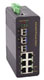 9 porttiset kupari / optiset ethernet kytkimet (switch) teollisuusympäristöön DIN-kisko kiinnityksellä ja 10-48VDC tehonsyötöllä.