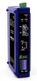 3 porttiset kupari / optiset ethernet kytkimet (switch) teollisuusympäristöön DIN-kisko kiinnityksellä ja 10-48VDC tehonsyötöllä.