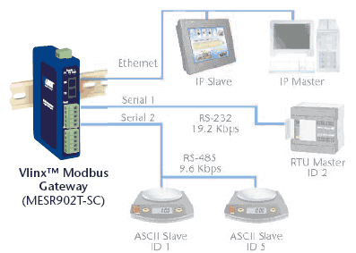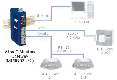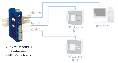 Modbus Problem #1Ethernet Master Serial SlavesMESR9xx modules can be used to integrate serial slave devices on a MODBUS TCP network. This allows TCP Masters to control serial slave devices. |